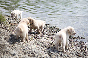 Labradore lieben Wasser und ein Bad im benachbarten See ist natürlich ein Muss