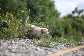 Einen weiteren Grundstein für das spätere Heranrufen ihres Welpen ist ein Pfiff,