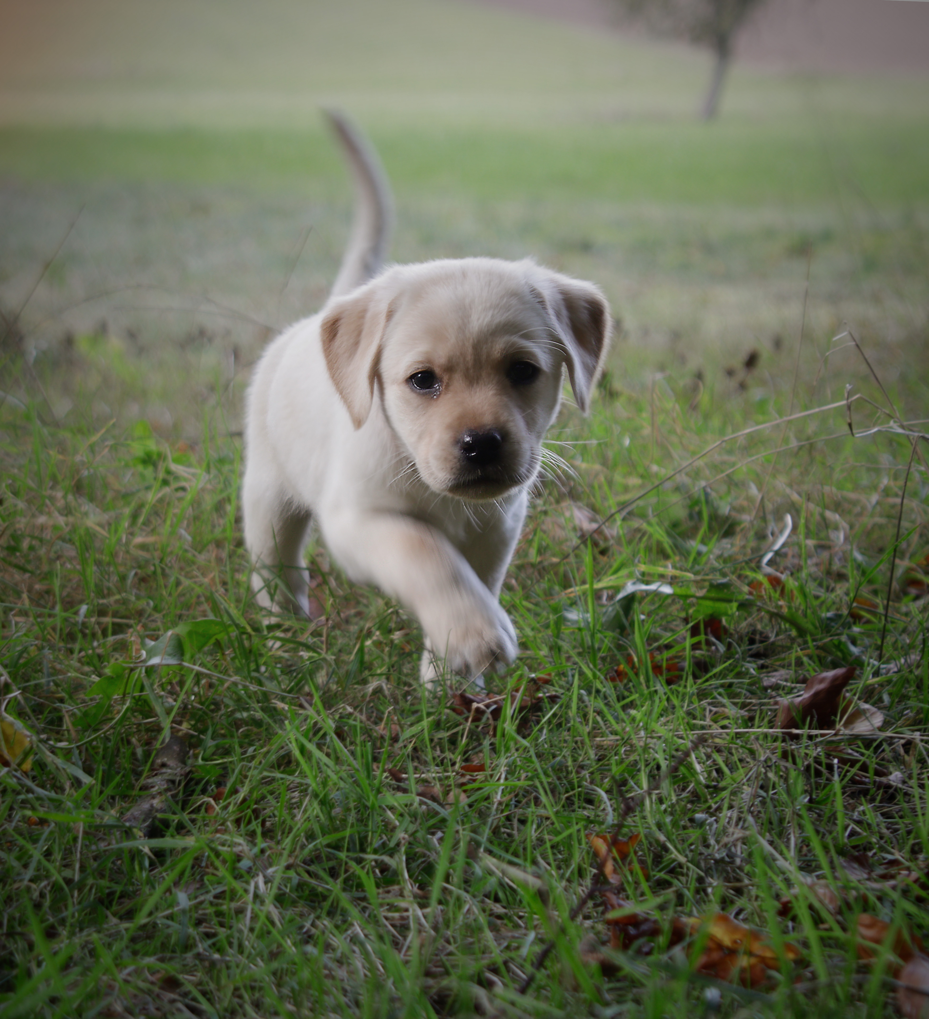 Labradore lieben Wasser und ein Bad im benachbarten See ist natürlich ein Muss für die kleinen Wasserratten. Einen weiteren Grundstein für das spätere Heranrufen ihres Welpen ist ein Pfiff, den wir jedes mal anwenden, wenn die Fütterung erfolgt. So verbindet der Welpe das Herankommen mit etwas sehr Angenehmem und wird dem immer gerne und verlässlich folgen. Für diese schöne Idee danke ich Nicole Weissmann, sie hat den Pfiff bei unserer Cherokee konditioniert, und ich führe das sehr gerne weiter.